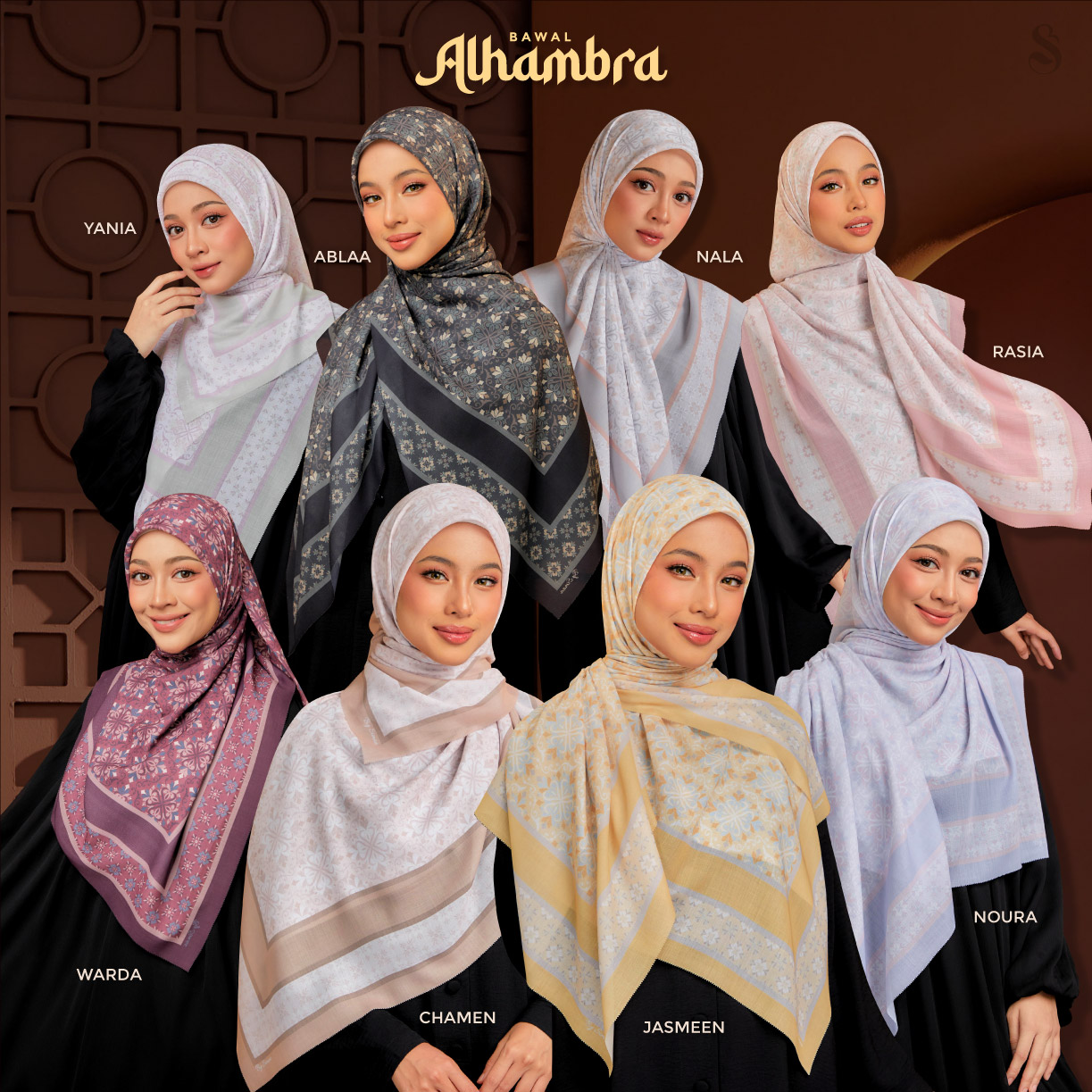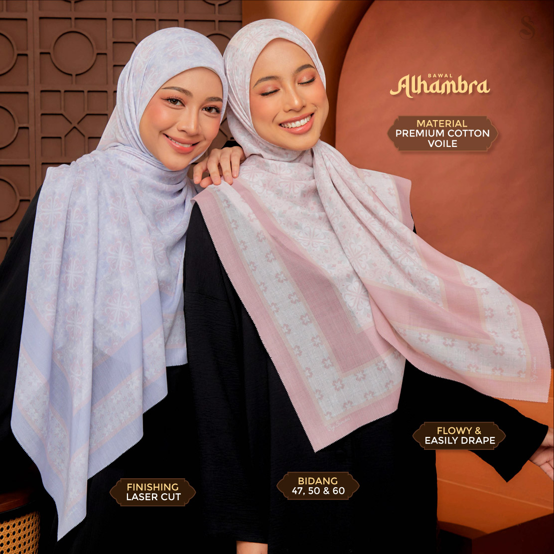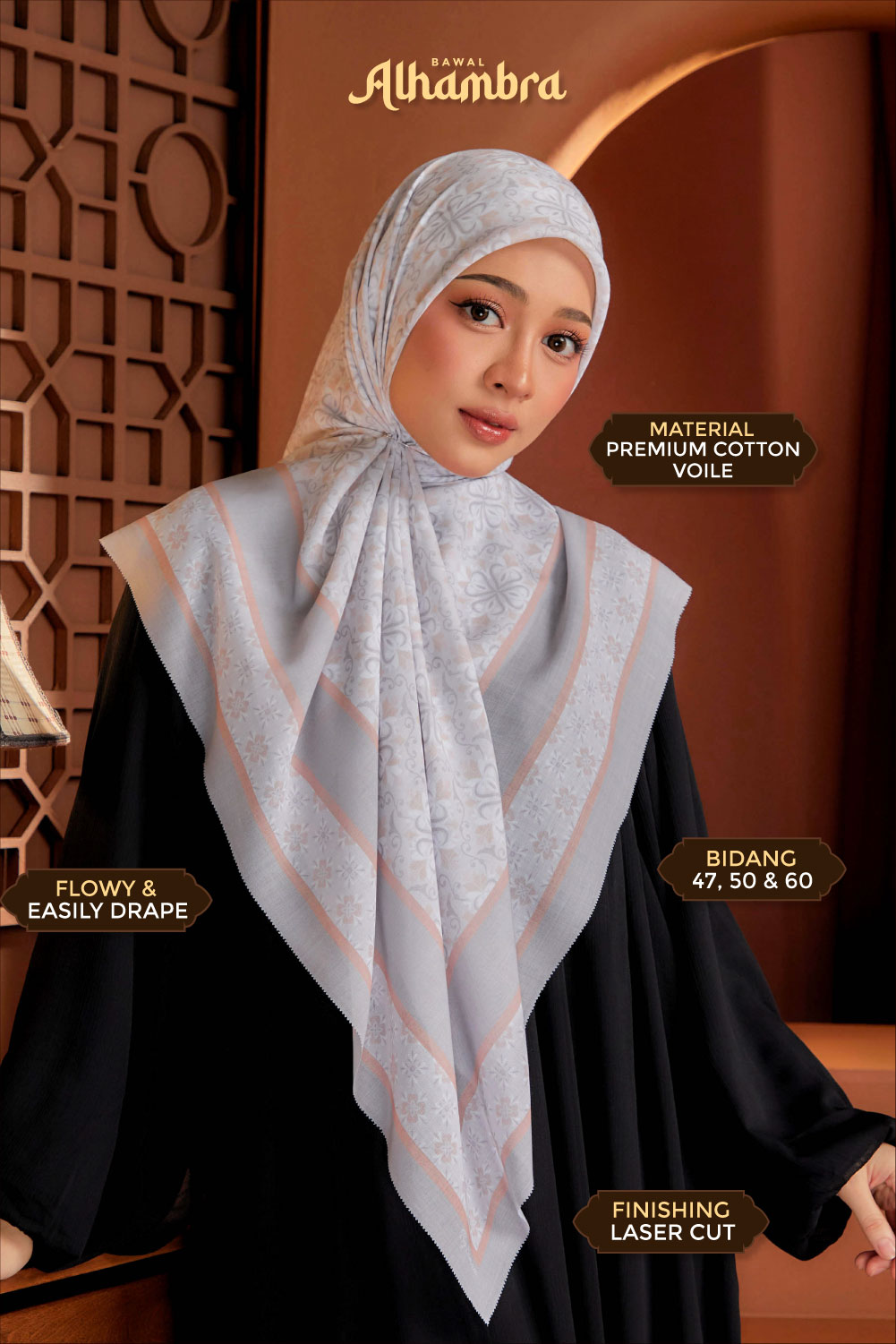 ** Model tinggi 161cm & pakai Bawal Alhambra 50″