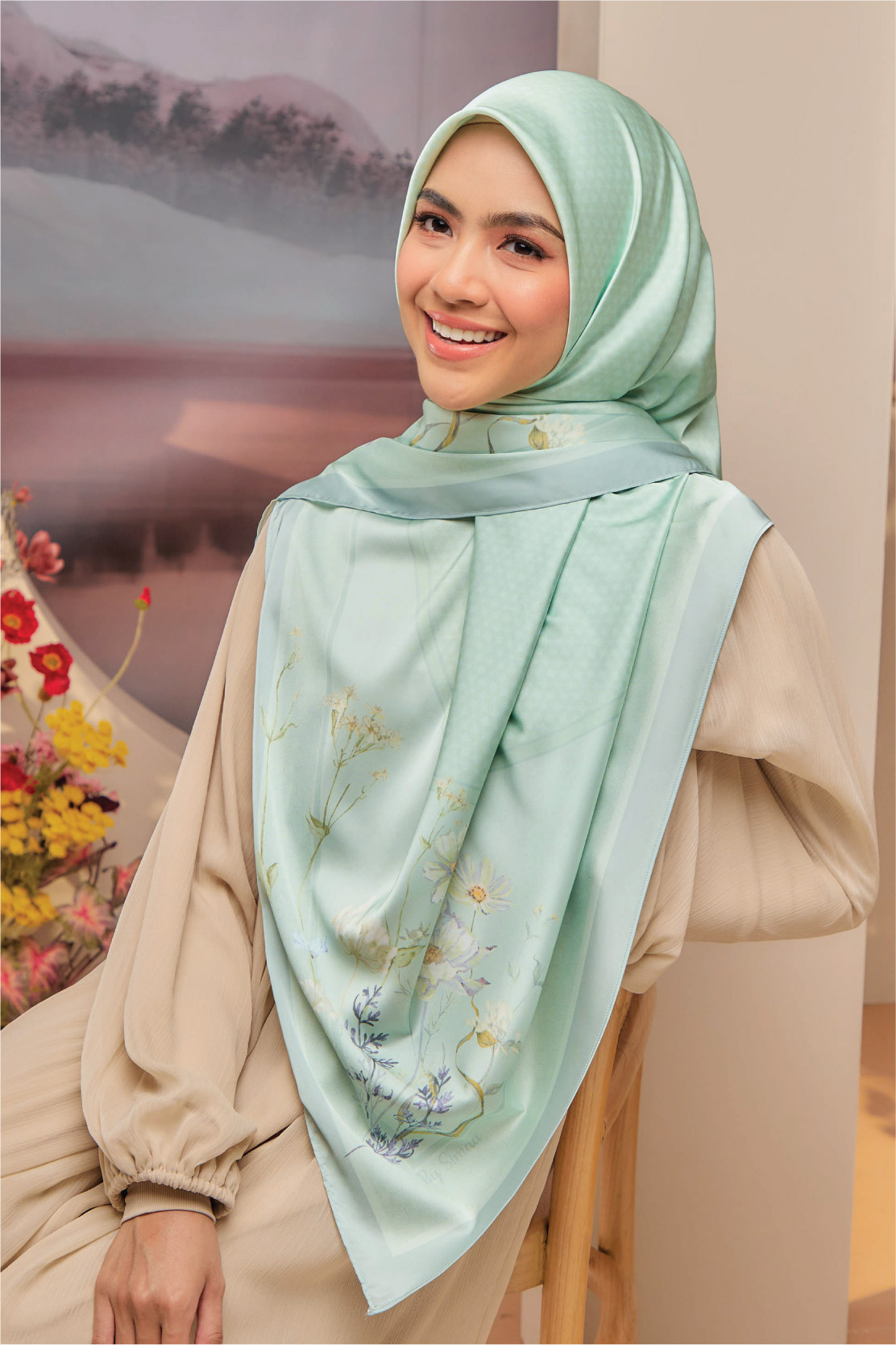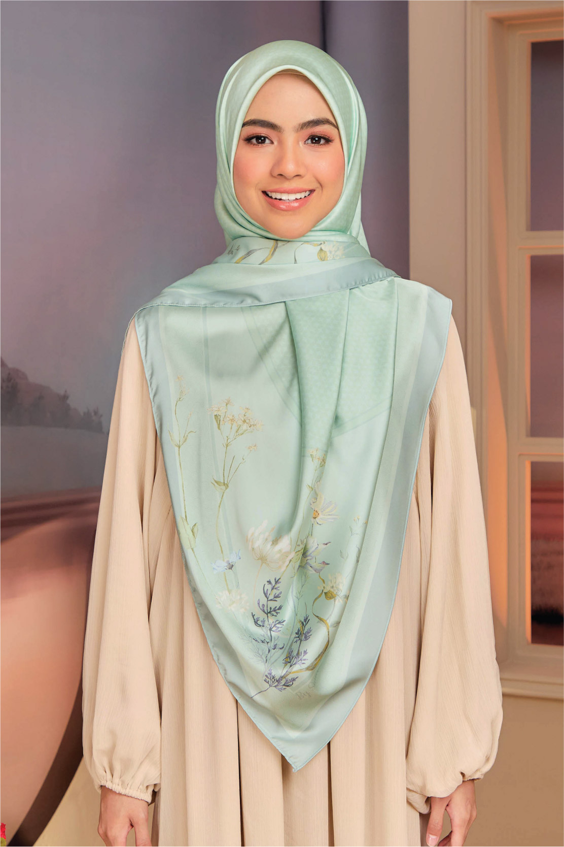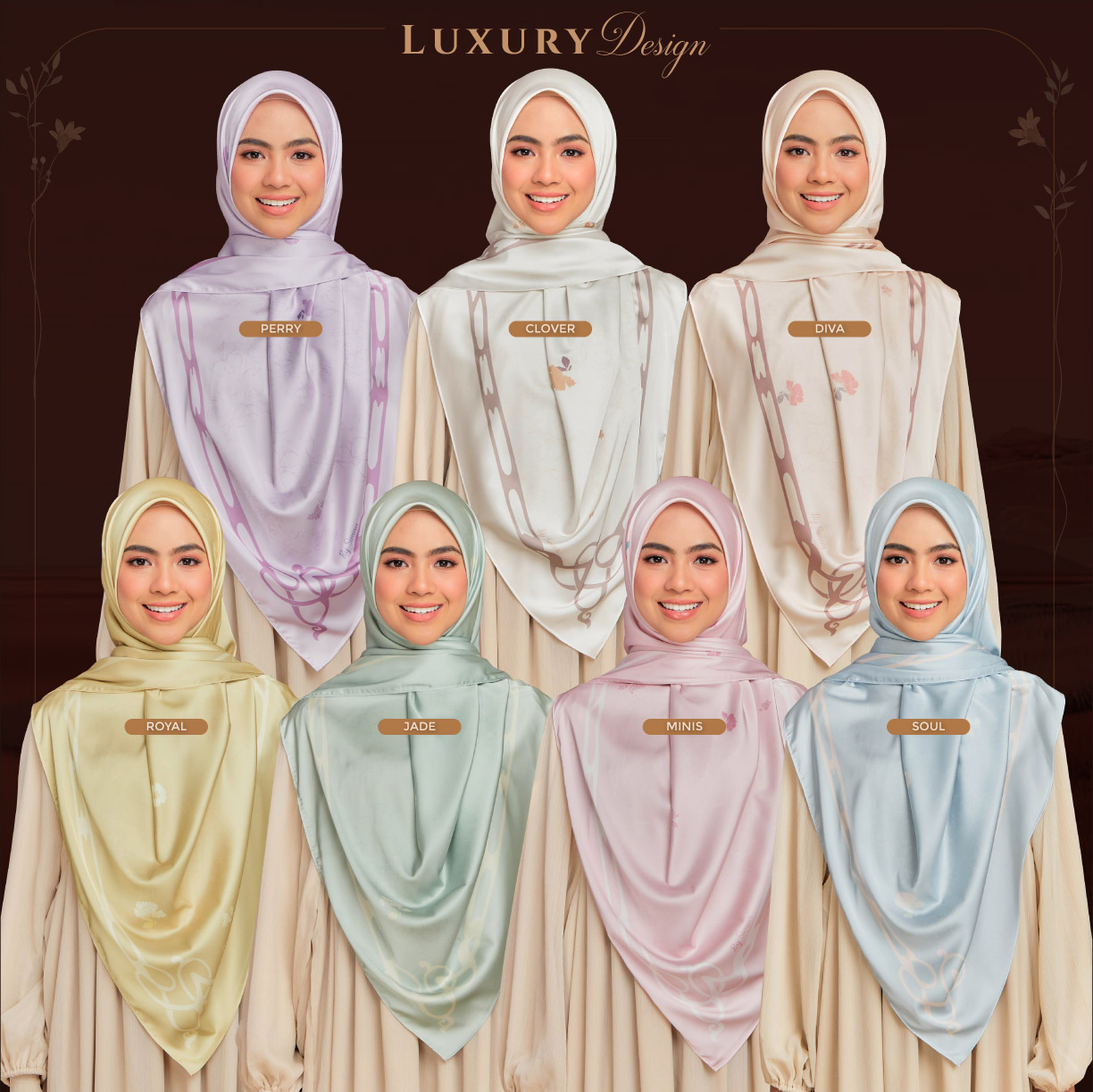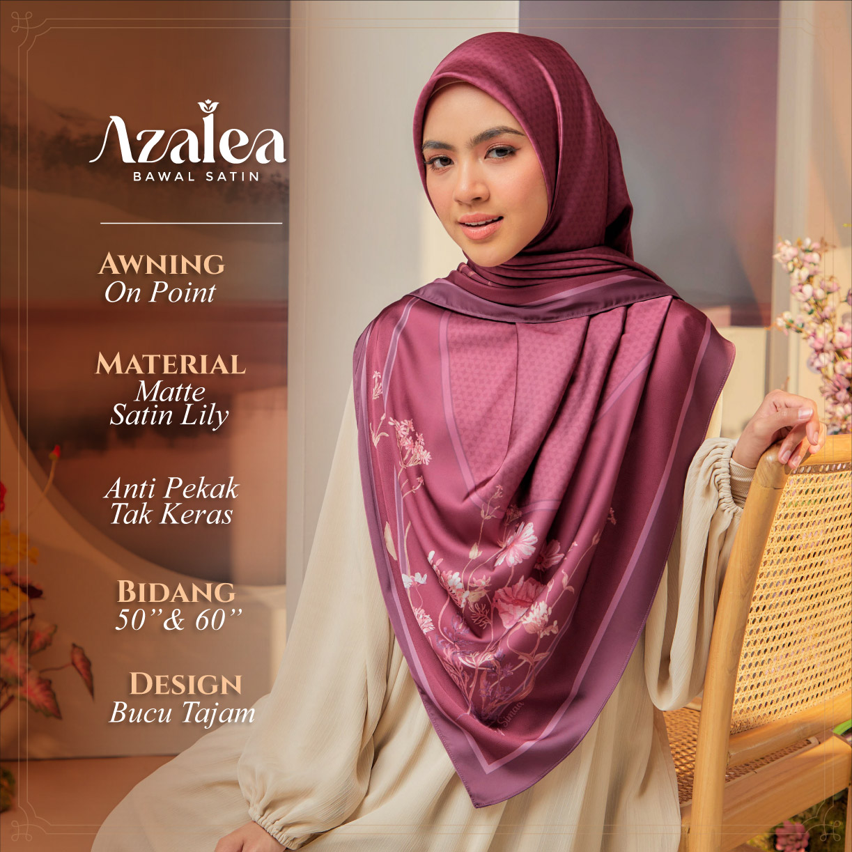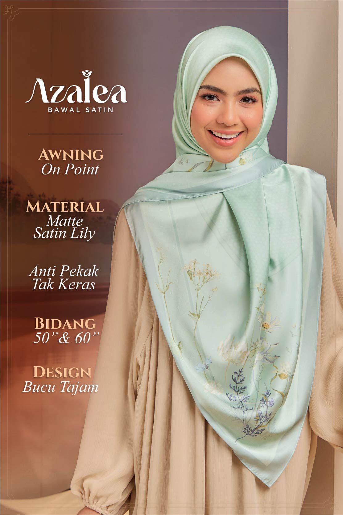 ➨ Material : Matte Satin Lily (senang terbentuk di muka & anti-pekak)