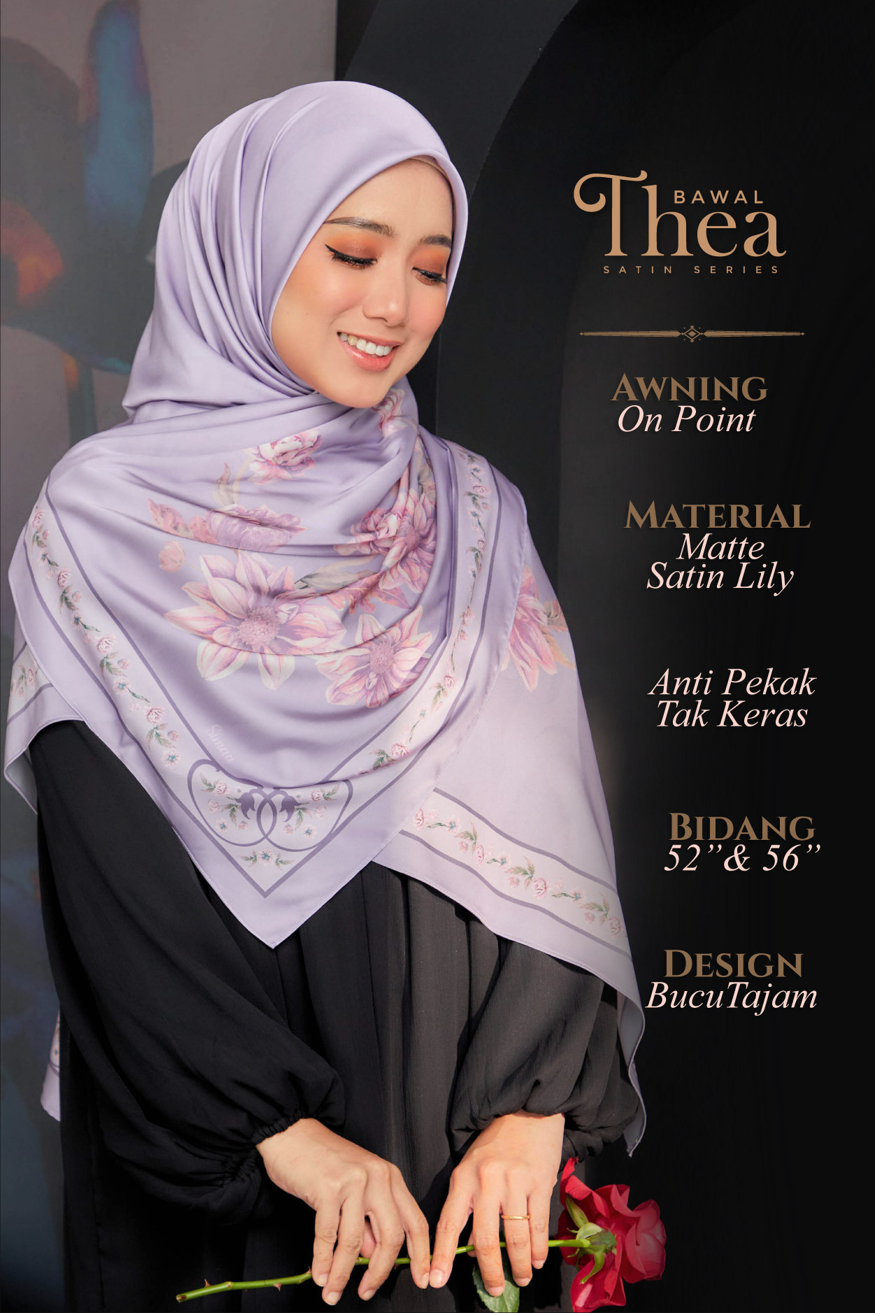 ➨ Material : Matte Satin Lily (senang terbentuk di muka & anti-pekak)