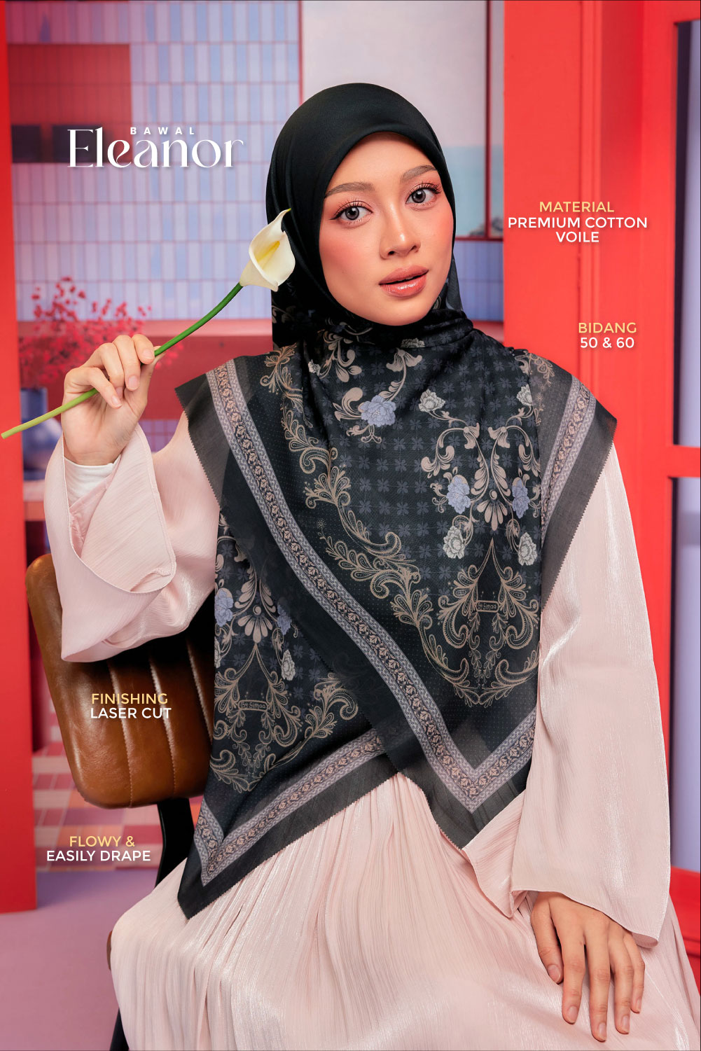 ** Model tinggi 161cm & pakai Bawal Eleanor 60″