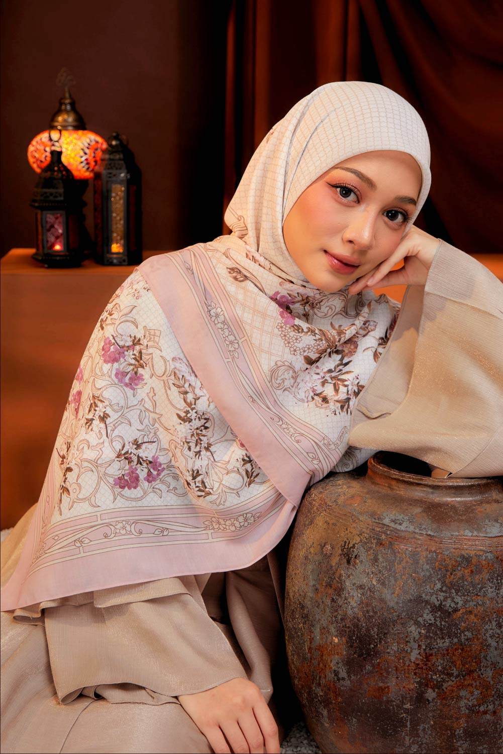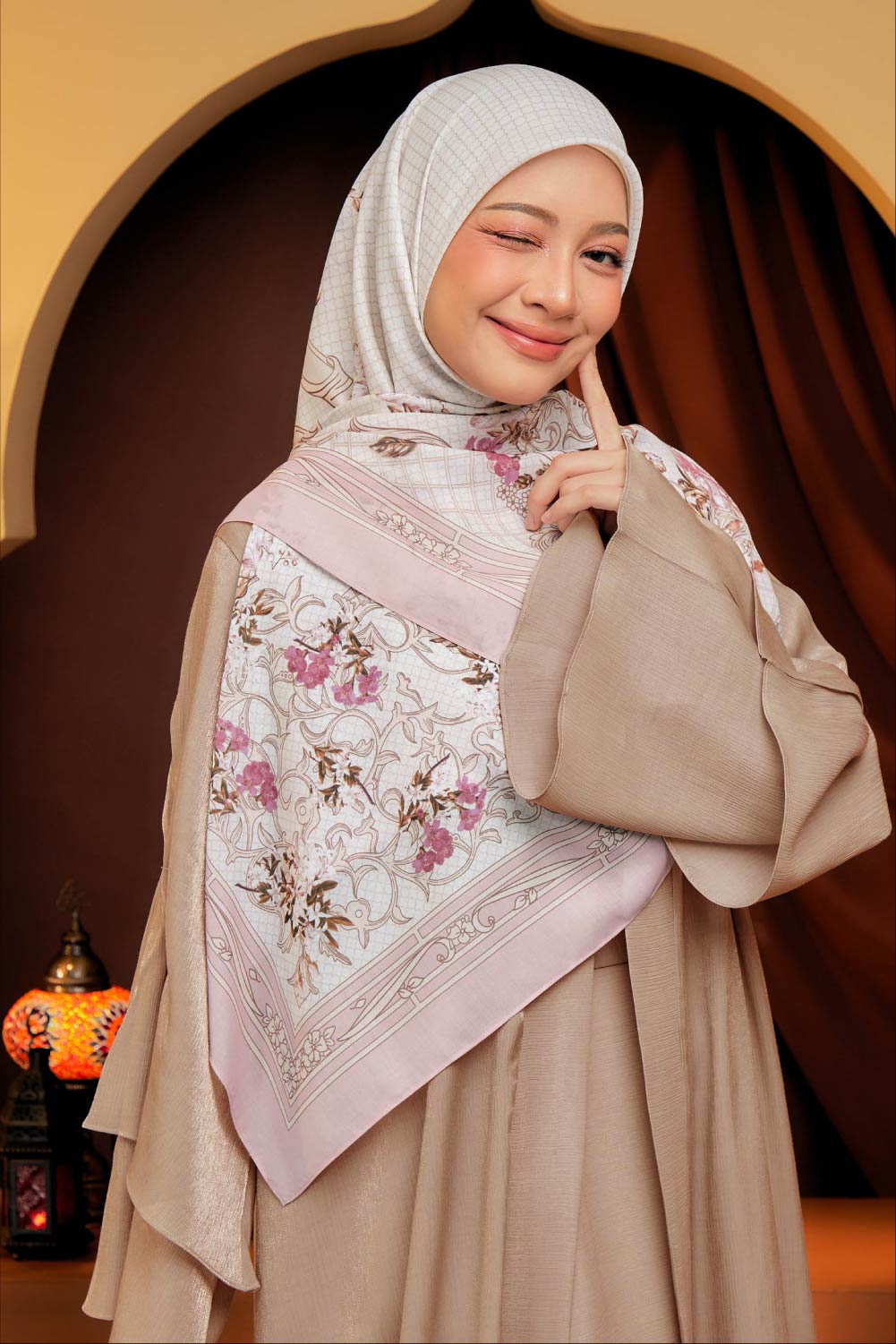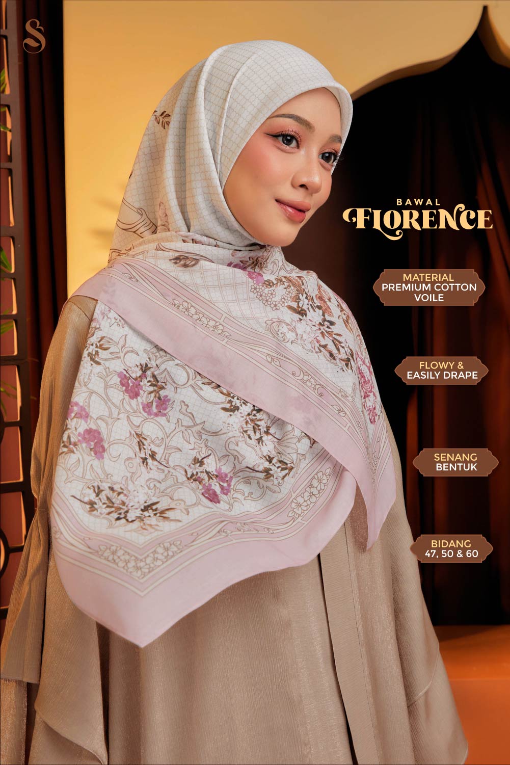 ** Model tinggi 161cm & pakai Bawal Florence 50″