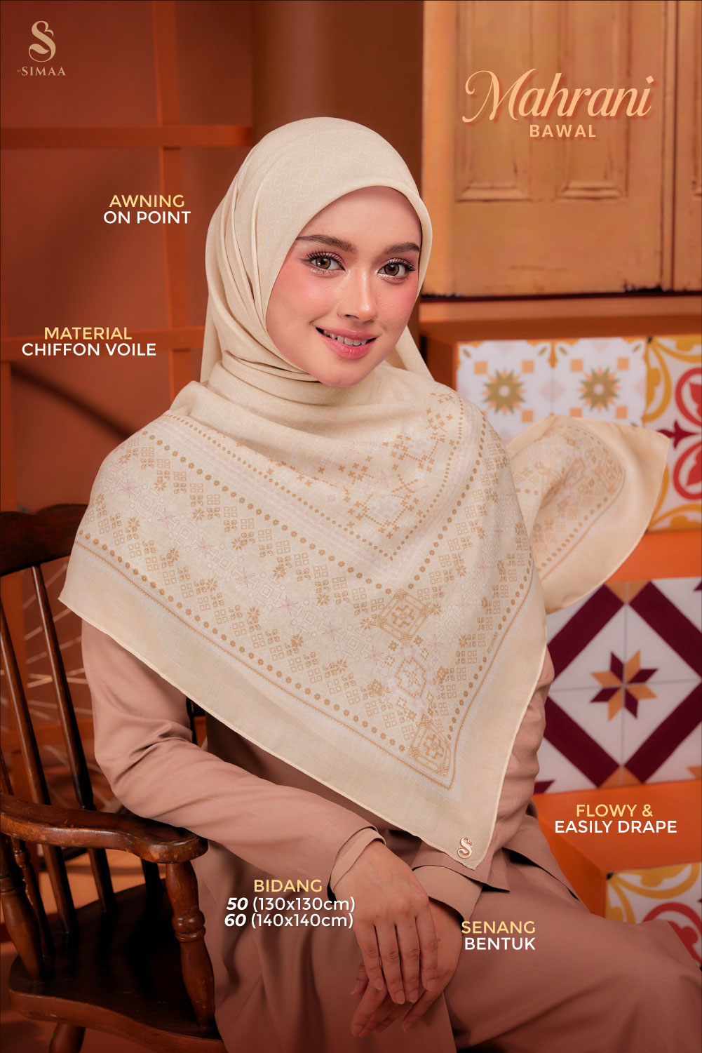 ** Model tinggi 161cm & pakai Bawal Mahrani 60″