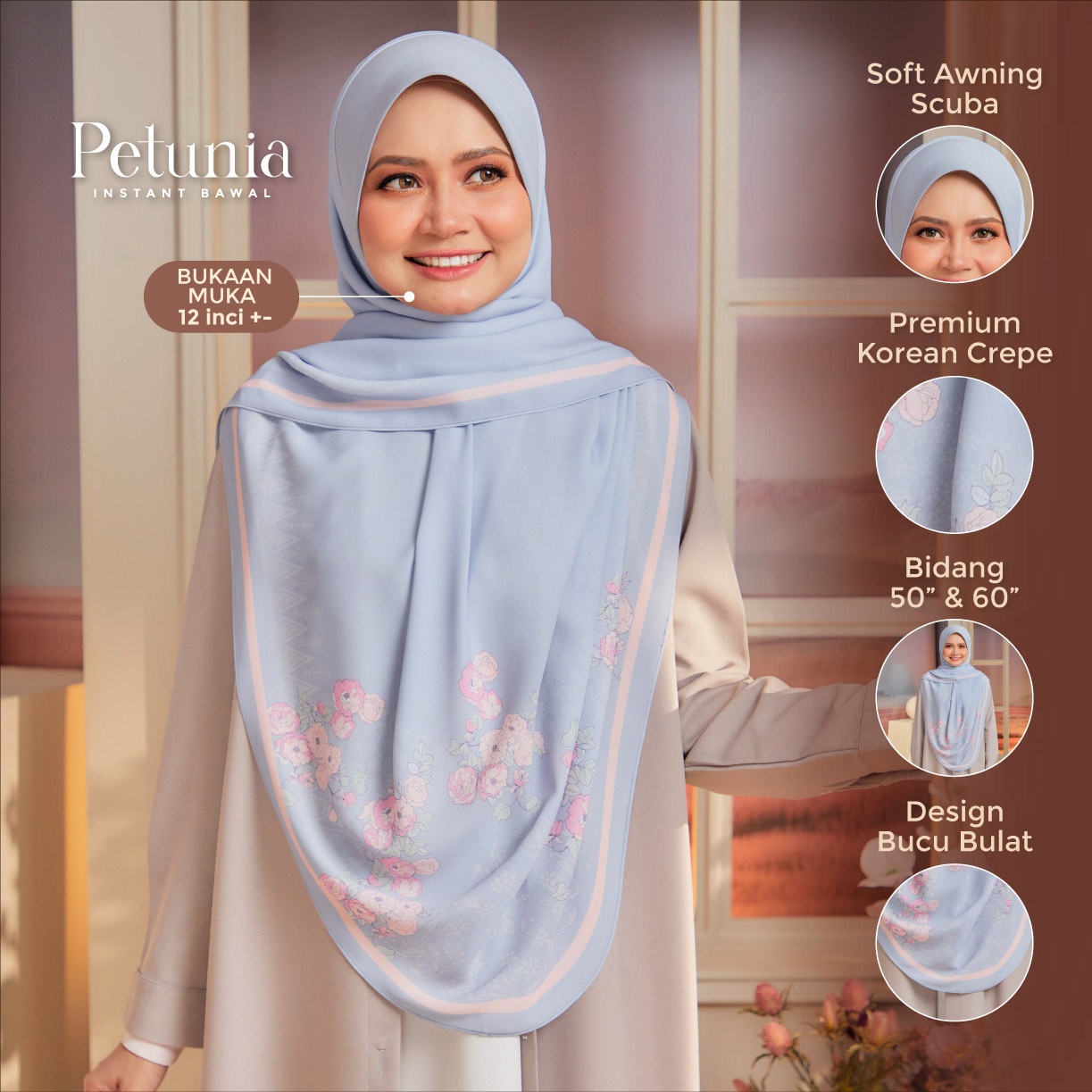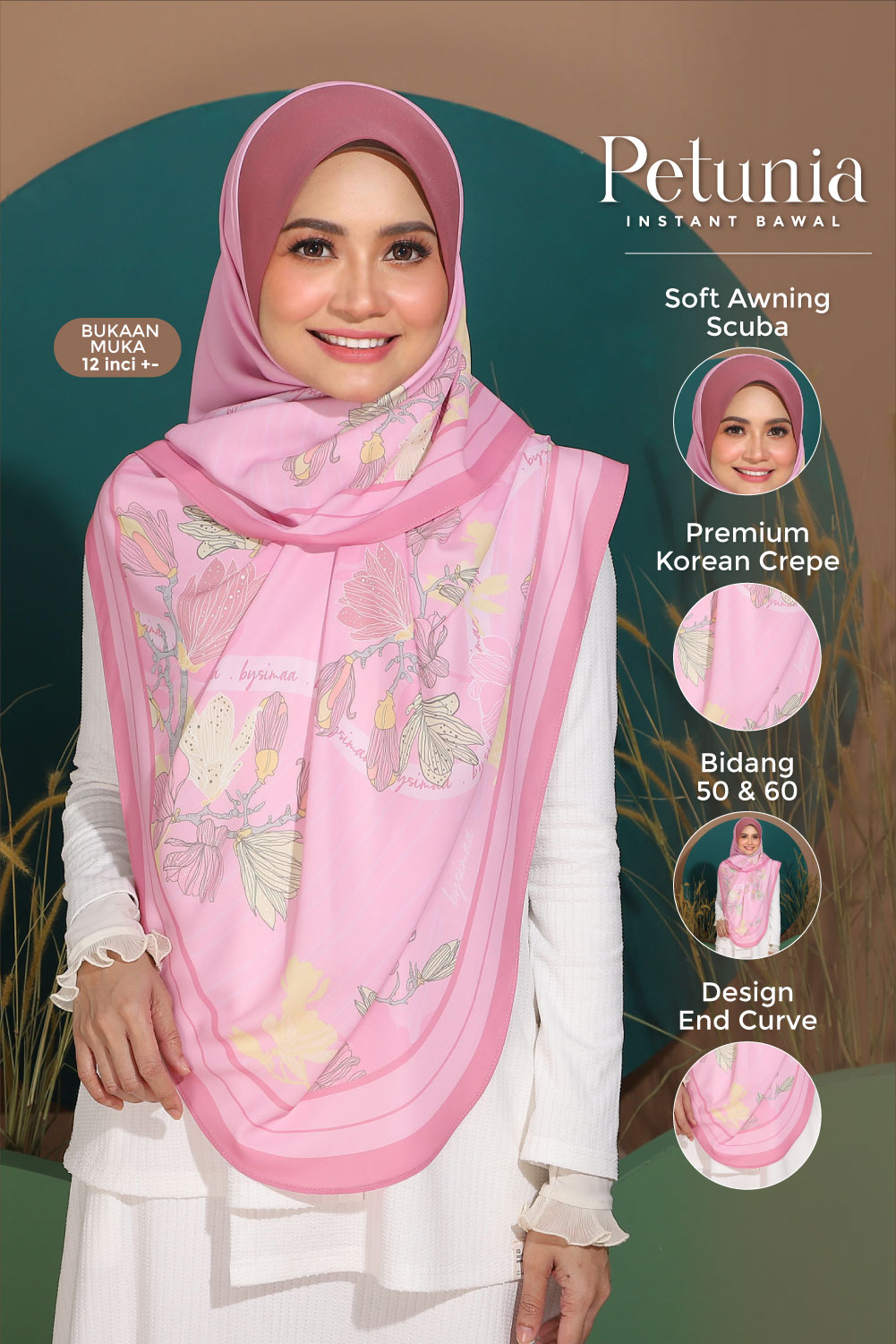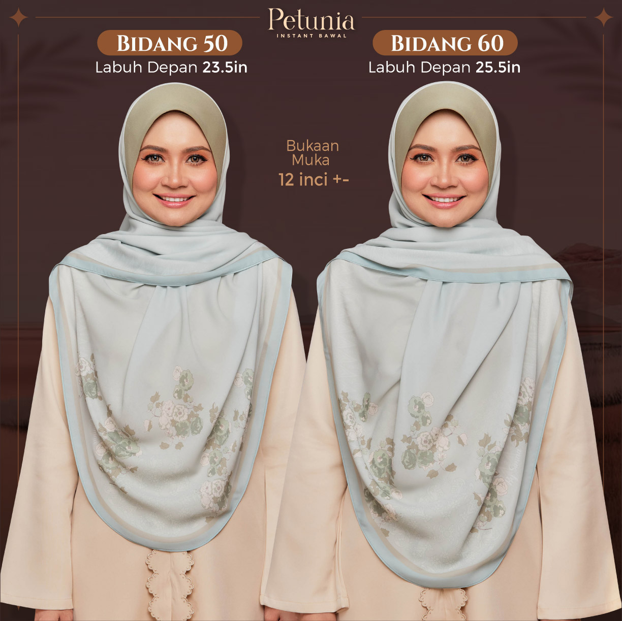 ** Model is 161 cm tall and wearing Instant Bawal Petunia (bidang 60″)