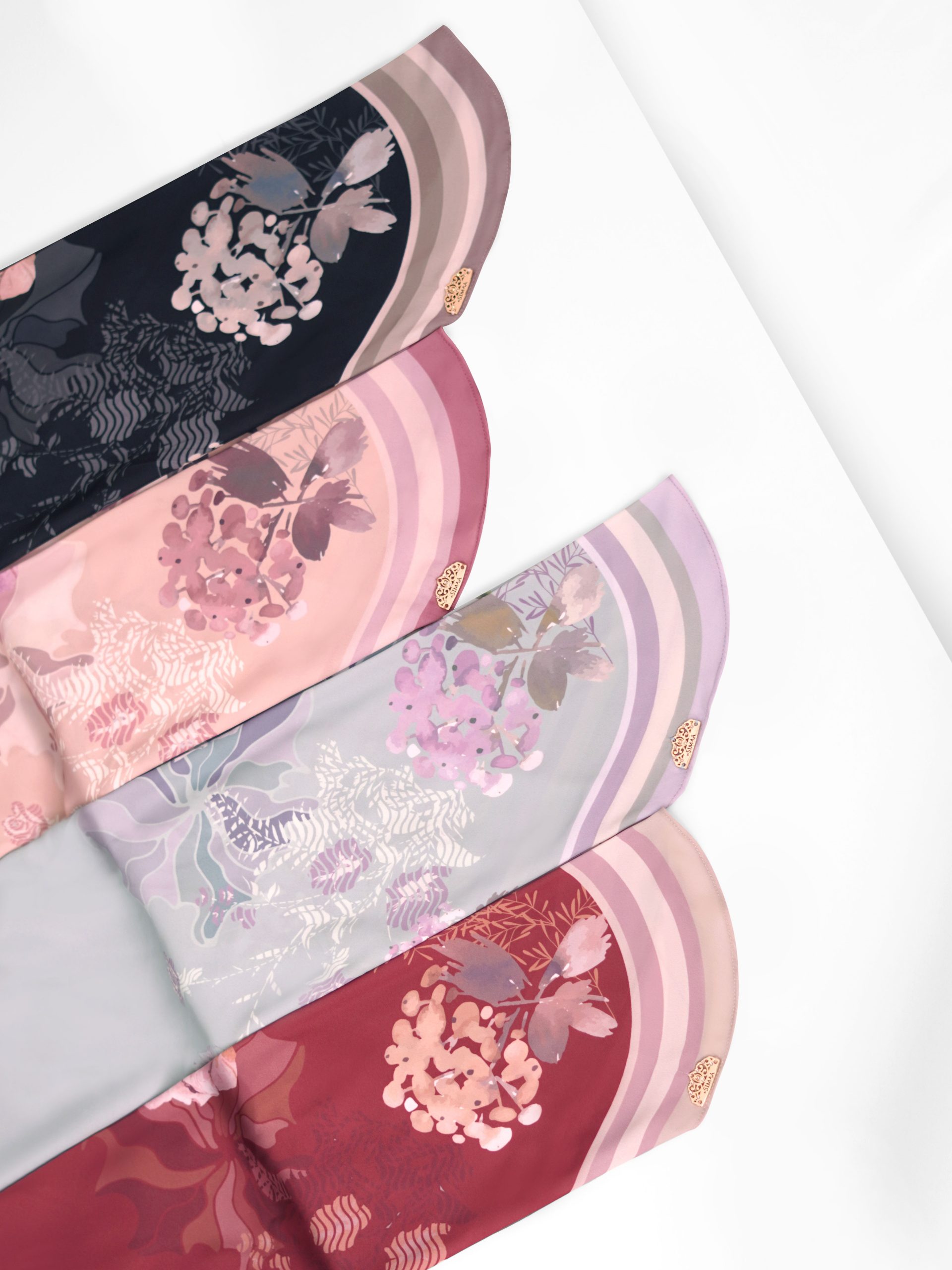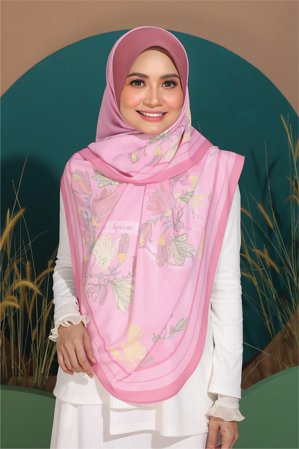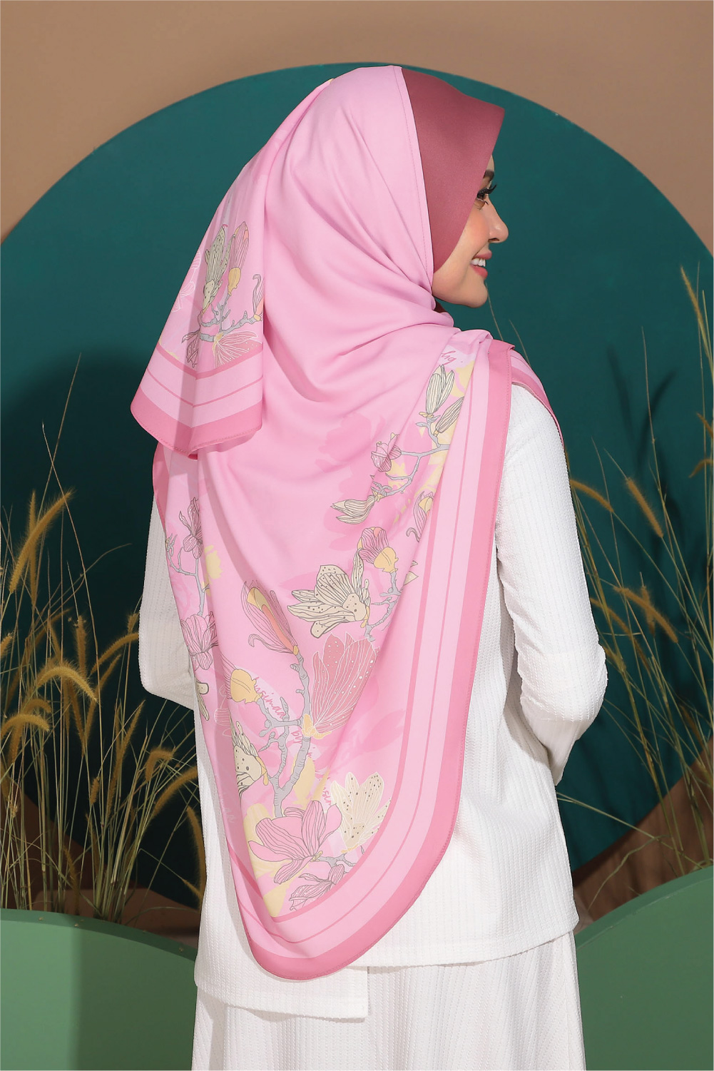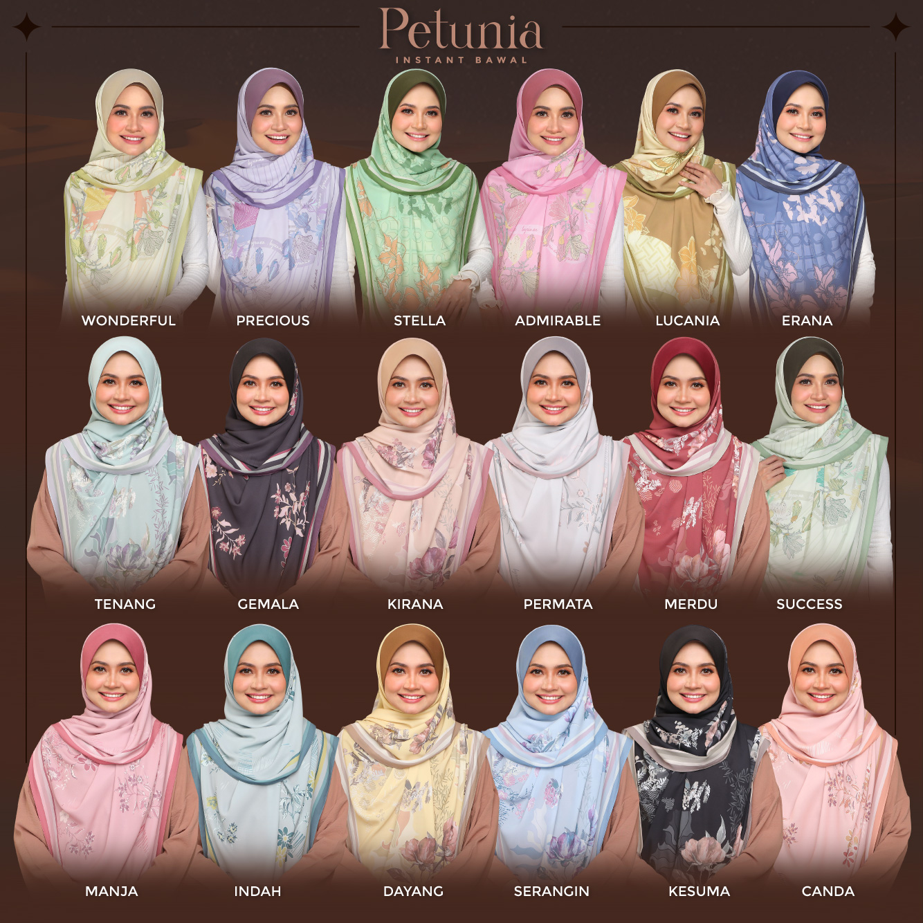 ** Model is 161 cm tall and wearing Instant Bawal Petunia (bidang 60″)