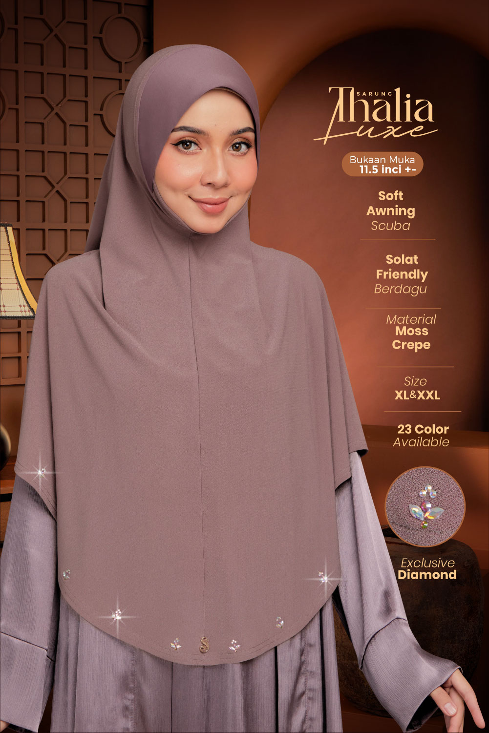 ➨ Design : Tudung sarung berdagu & dihiasi perincian batu krystal