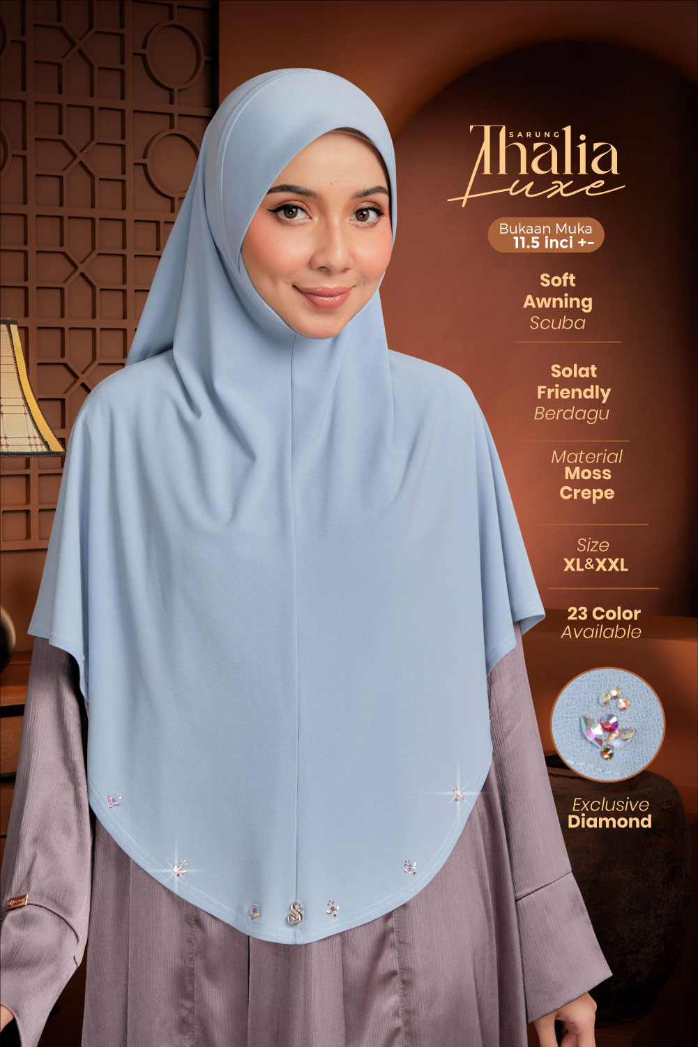 ➨ Design : Tudung sarung berdagu & dihiasi perincian batu krystal