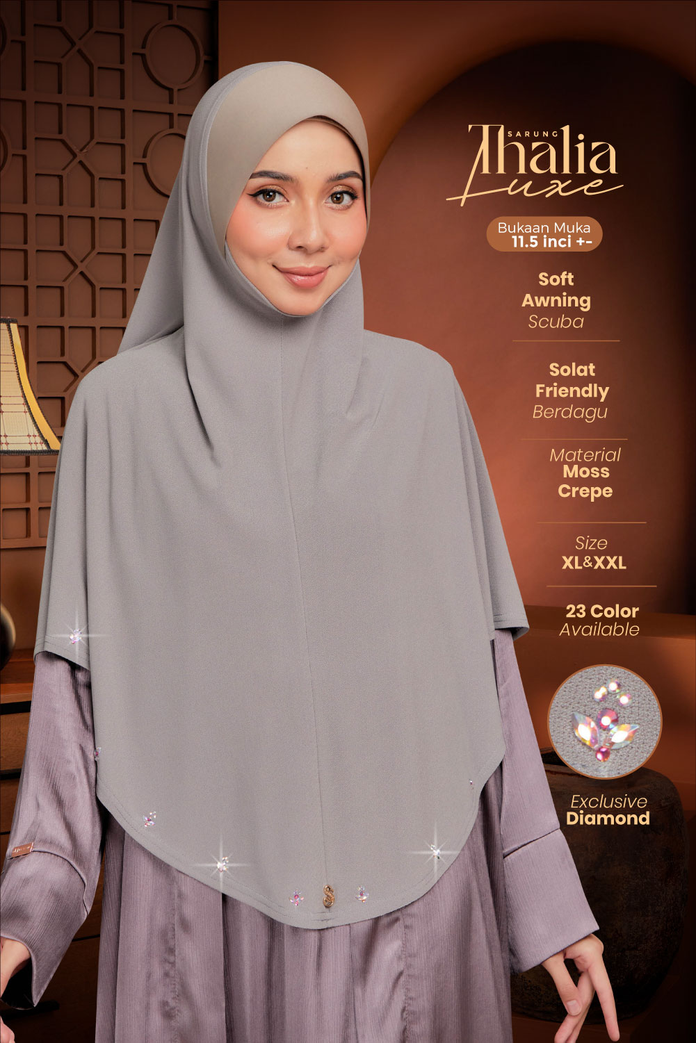➨ Design : Tudung sarung berdagu & dihiasi perincian batu krystal